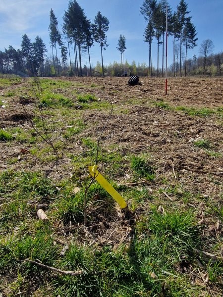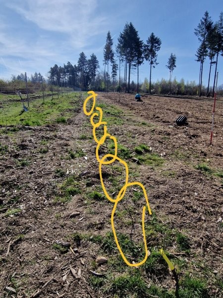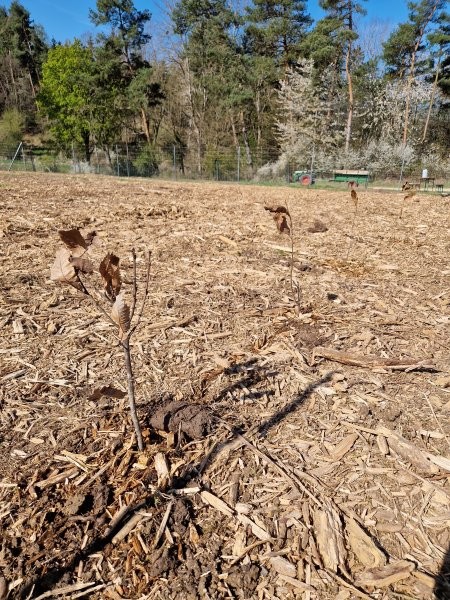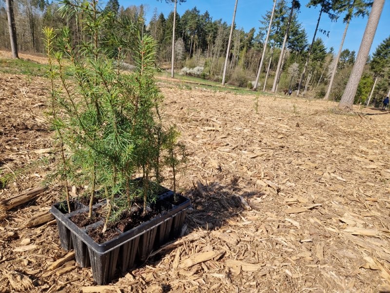 Auf Basis von Baumartenpotentialkarten und der Expertise erfahrener Revier- und Forstleiter sollen auf dieser Aufforstungsfläche folgender Baumarten neu gepflanzt werden, um einen klima-fitten Wald zu gestalten: Roteiche, Winterlinde, Esskastanie, Baumhasel und Vogelkirsche.