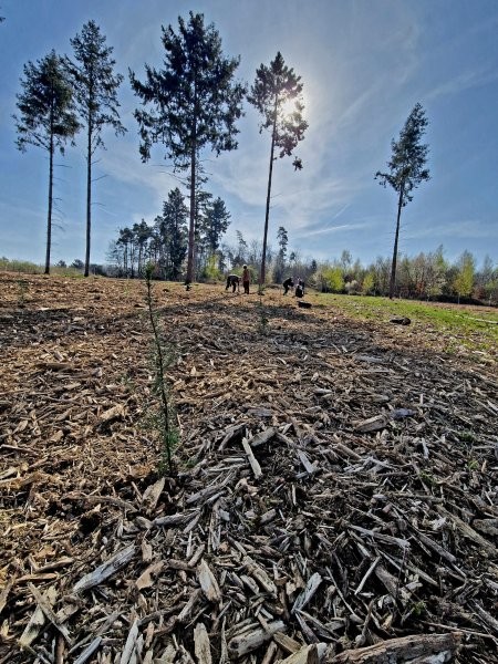 Aufgrund von Klimawandel, Hitze, Sturm, Windwurf und Schädlingen sind diese Wälder stark gestresst und bedroht. Aufforstungsprojekte wie dieses Baumprojekt hier in Hohenstein helfen dabei, die Region nachhaltig zu bewahren. Für alle, die hier leben.